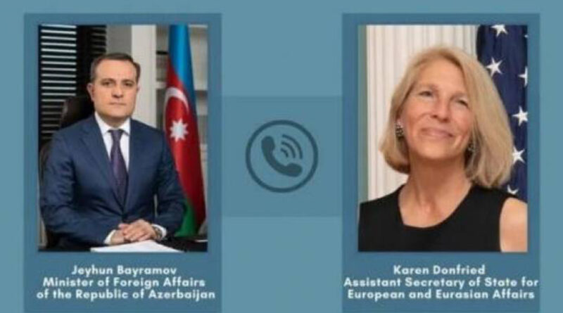 Այսօր հեռախոսազրույց է տեղի ունեցել Ադրբեջանի արտաքին գործերի նախարար Ջեյհուն Բայրամովի և ԱՄՆ պետքարտուղարի Եվրոպայի ու Եվրասիայի հարցերով օգնական Քերըն Դոնֆրիդի միջև։