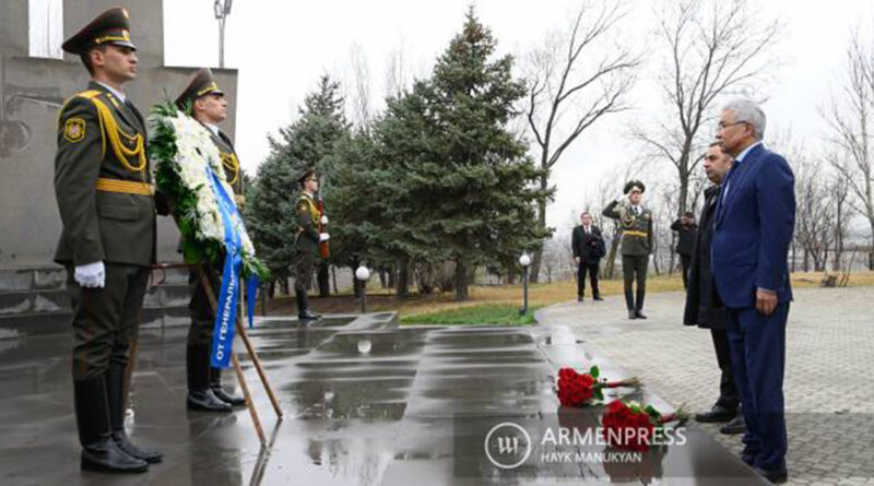 Իմանգալի Թասմագամբետովը ծաղկեպսակ է դրել արցախյան պատերազմներում զոհված հայորդիների հիշատակը հավերժացնող հուշարձանի մոտ։
