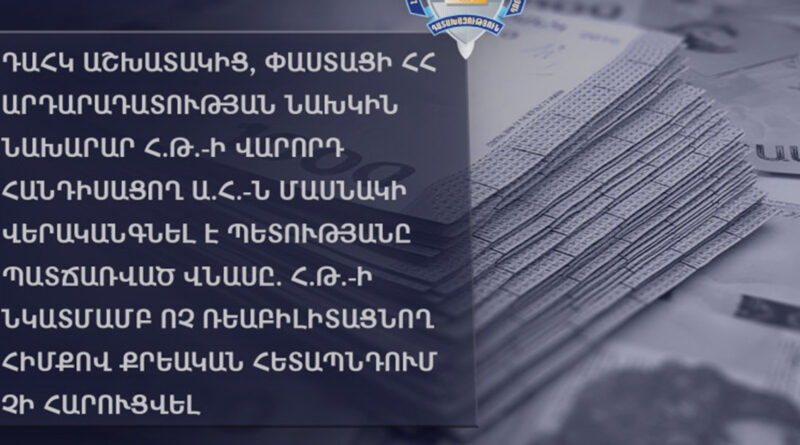 Հրայր Թովմասյանի վարորդը մասնակի վերականգնել է պետությանը պատճառված վնասը