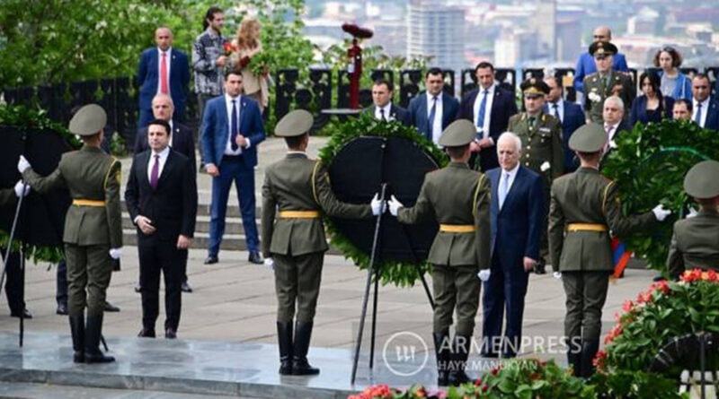Հայաստանի նախագահ Վահագն Խաչատուրյանը, Ազգային ժողովի նախագահ Ալեն Սիմոնյանը, փոխվարչապետ Մհեր Գրիգորյանը, բարձրաստիճան պետական պաշտոնյաներ, զինված ուժերի բարձրաստիճան սպայակազմը, պատերազմի վետերանները ծաղիկներ դրեցին Անհայտ զինվորի հուշահամալիրի անմար կրակի մոտ՝ հարգանքի տուրք մատուցելով հայրենիքի պաշտպանության ու խաղաղության համար կյանքը զոհաբերած հերոսների հիշատակին: