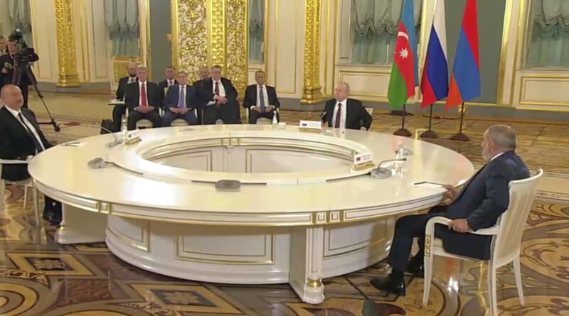 Րոպեներ առաջ Մոսկվայում մեկնարկեց եռակողմ Փաշինյան-Պուտին-Ալիև հանդիպումը։ Նման ձևաչափով վերջին հանդիպումը կայացել էր նախորդ տարի Սոչիում հոկտեմբերի 31-ին։ Նիկոլ Փաշինյանը Մոսկվայում է աշխատանքային այցով, որի շրջանակում մասնակցել է Եվրասիական տնտեսական բարձրագույն խորհրդի հերթական նիստին: Ավելի վաղ՝ ըստ էության Բրյուսելում մայիսի 14-ին կայացած եռակողմ՝ Փաշինյան-Միշել-Ալիև բանակցություններից հետո Նիկոլ Փաշինյանը հայտարարել էր, որ հայկական կողմը համաձայնել է Ռուսաստանի և Ադրբեջանի ղեկավարների մասնակցությամբ եռակողմ հանդիպում անցկացնել Մոսկվայում: Նա ընդգծել էր, որ համապատասխան առաջարկը ստացվել է ռուսական կողմից, և Հայաստանն ընդունել է այն: Նախօրեին ՌԴ նախագահի մամուլի խոսնակ Դմիտրի Պեսկովն ասել էր, որ նախապատրաստական աշխատանքներ են տարվում այդ եռակողմ շփումների ուղղությամբ, և իհարկե հույս ունեն` արդյունավետ հանդիպում կլինի։ «Արդյունավետության աստիճանը ցույց կտա ժամանակը»,– նշել էր Պեսկովը։