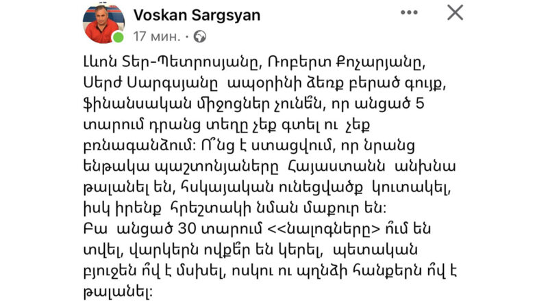 Սերժ Սարգսյանը կրկին թիրախում ու նման իբր ընդդիմադիրոտ դեմքեր բուծվում են զուտ նման գրառումներ անելու համար: