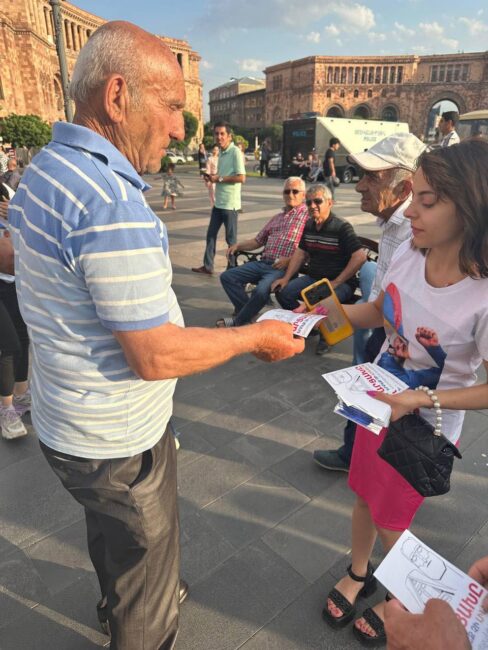 Քաղաքացիները մեծ հետաքրքրություն են ցուցաբերումիրազեկման թռուցիկների նկատմամբ, զրույցի են բռնվում երիտասարդ հանրապետականների հետ, հարցեր ուղղում նրանց՝  միաժամանակ դատապարտելով քաղաքական գործիչների նկատմամբ իրականացվող բռնությունն ու հալածանքը մեր երկրում։