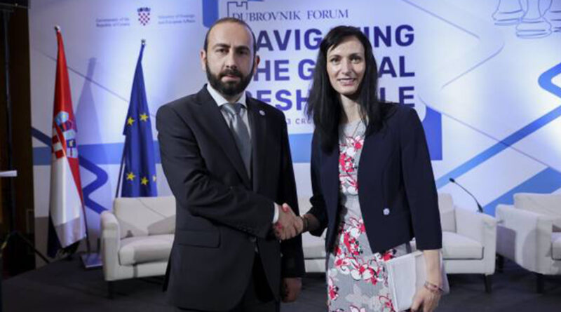 Հայաստանի արտաքին գործերի նախարար Արարատ Միրզոյանը Դուբրովնիկի համաժողովի շրջանակներում համաշխարհային կարգի արդի մարտահրավերների վերաբերյալ պանելային քննարկումից առաջ կարճատև հանդիպում է ունեցել Բուլղարիայի արտաքին գործերի նախարար Գաբրիել Մարիայի հետ։