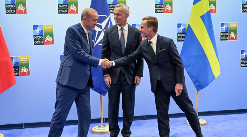 Թուրքիան համաձայնել է հանել ՆԱՏՕ-ին Շվեդիայի անդամակցության վետոն: Որոշումն ընդունվել է Էրդողանի, Շվեդիայի վարչապետ Ուլֆ Քրիստենսոնի, ՆԱՏՕ-ի գլխավոր քարտուղար Յենս Ստոլտենբերգի և Եվրախորհրդի ղեկավար Շառլ Միշելի Վիլնյուսում ՆԱՏՕ-ի գագաթնաժողովից առաջ տեղի ունեցած բանակցություններից հետո: Այդ մասին, բանակցությունների արդյունքներով, հայտարարել է Ստոլտենբերգը։
