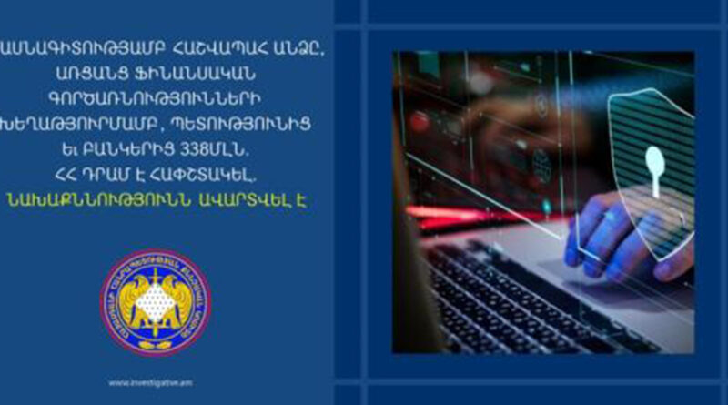 ՀՀ քննչական կոմիտեի Հատկապես կարևոր գործերի քննության գլխավոր վարչության կիբեռհանցագործությունների և բարձր տեխնոլոգիաների ոլորտում կատարված հանցագործությունների քննության վարչությունում ավարտվել է առանձնապես խոշոր չափերով համակարգչային հափշտակություն կատարելու դեպքի առթիվ նախաձեռնված քրեական վարույթի նախաքննությունը: