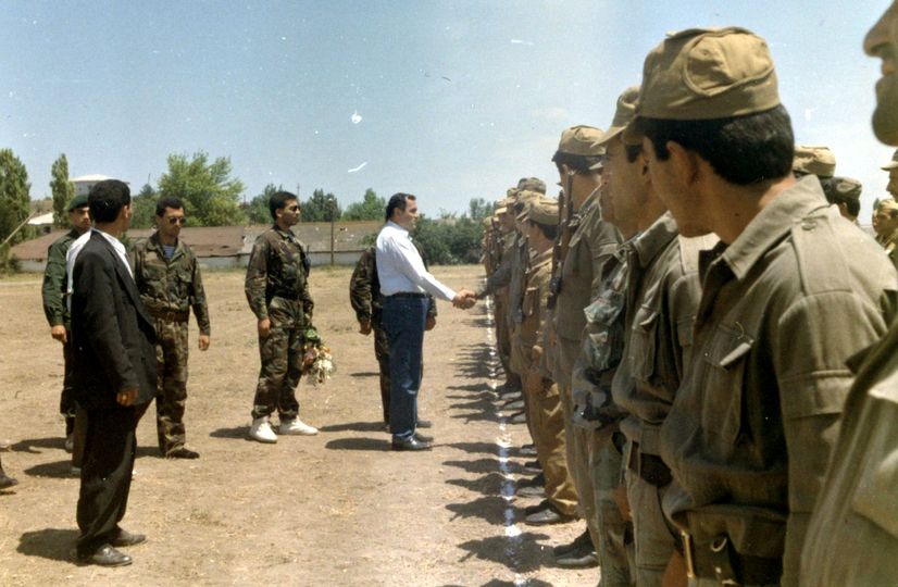 Լուսանկարում՝ նախագահ Տեր-Պետրոսյանը Լեռնային Ղարաբաղում, 1995թ․»։