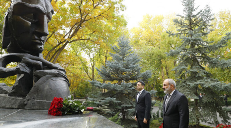 Նիկոլ Փաշինյանն Ազգային ժողովի նախագահ Ալեն Սիմոնյանի հետ ծաղիկներ է խոնարհել ԱԺ այգում կանգնեցված հուշակոթողի մոտ և հարգանքի տուրք մատուցել 1999 թվականի հոկտեմբերի 27-ի ոճրագործության զոհ դարձած պետական և քաղաքական գործիչների հիշատակին: