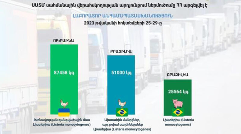 ❌🐓Ուկրաինայից թռչնամիս՝ 87458 կգ, խոնավության զանգվածային մաս և լիստերիա (Listeria monocytogenes) ցուցանիշով,