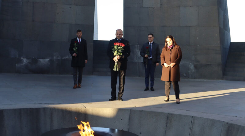 Նրանք ծաղիկներ դրեցին անմար կրակի մոտ և մեկ րոպե լռությամբ հարգեցին Հայոց ցեղասպանության անմեղ զոհերի հիշատակը:
