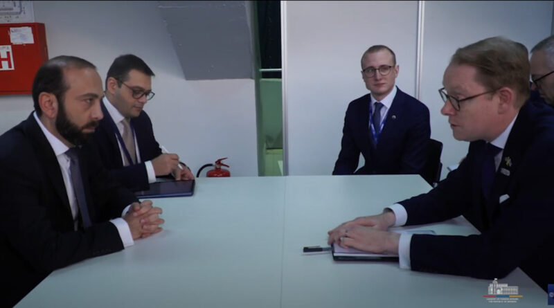 Հայաստանի և Շվեդիայի ԱԳ նախարարները քննարկել են տարածաշրջանային անվտանգության հարցեր։ Նախարար Միրզոյանը հանգամանալից ներկայացրել է ՀՀ կառավարության կողմից մշակված «Խաղաղության խաչմերուկ» նախագծի միջոցով ընձեռնվող հնարավորությունները՝ կարևորելով դրա կյանքի կոչման ուղղությամբ միջազգային գործընկերների գործուն ներգրավածությունը, ներդրումների խրախուսումը։