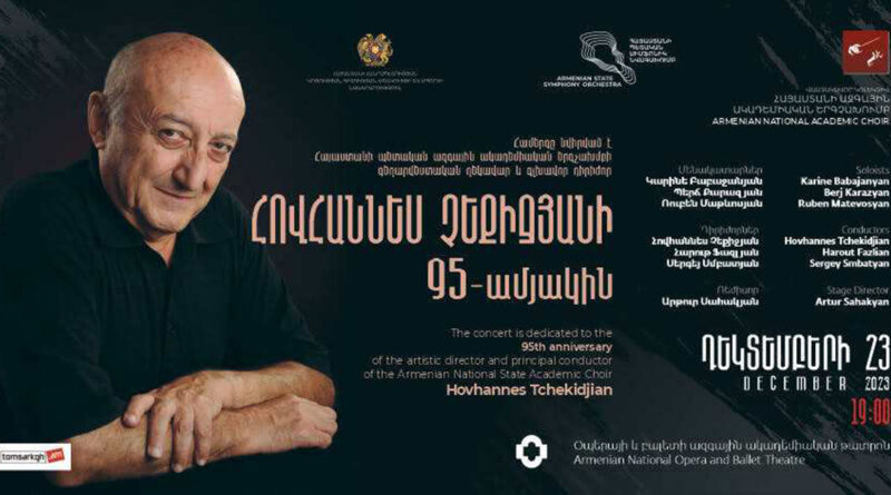 Դեկտեմբերի 23-ին Հայաստանի Օպերայի և Բալետի ազգային թատրոնում տեղի կունենա Ազգային հերոս, Հայաստանի պետական ազգային ակադեմիական երգչախմբի գեղարվեստական ղեկավար Հովհաննես Չեքիջյանի 95-ամյակին նվիրված հոբելյանական երեկոն Հայաստանի պետական ազգային ակադեմիական երգչախմբի, Հայաստանի պետական սիմֆոնիկ նվագախմբի և անվանի մենակատարների և դիրիժորների մասնակցությանբ։