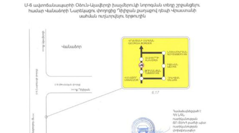 Օձունի խաչմերուկում իրականացվող հիմնանորոգման աշխատանքներով պայմանավորված՝ մինչև 2024թ․ փետրվարի 15-ը ժամանակավորապես արգելվելու է կցորդով կամ կիսակցորդով բեռնատար տրանսպորտային միջոցների, ինչպես նաև զբոսաշրջիկներ տեղափոխող ավտոբուսների երթևեկությունը Մ-6, Վանաձոր-Ալավերդի-Վրաստանի սահման միջպետական նշանակության և Հ-35, (Մ-6)-Օձուն-Արևածագ (Հ-24) հանրապետական նշանակության ավտոճանապարհի հատման տեղամասում։
