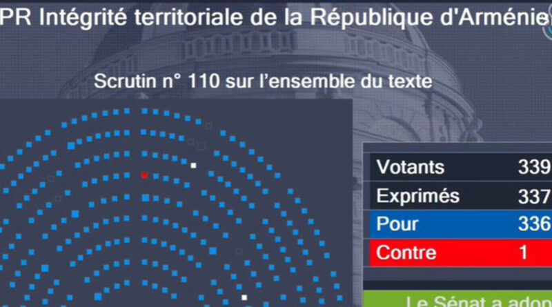 Ֆրանսիայի Սենատը 336 կողմ և մեկ դեմ ձայնով ընդունել է Ադրբեջանի դեմ պատժամիջոցներ կիրառելու բանաձևը: