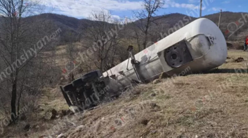 Տավուշի մարզում հեղուկ գազ տեղափոխող ավտոմեքենայի վրայից ցիստեռնը պոկվել և շպրտվել է
