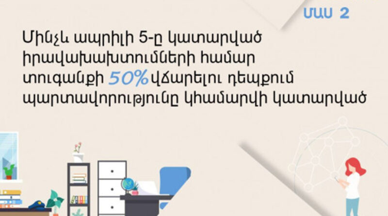 Եթե մինչև ապրիլի 5-ը կատարված իրավախախտման վերաբերյալ ունեք պարտավորություն, բայց այն չի գտնվում հարկադիր կատարման ծառայությունում, ապա դրա 50 տոկոսը վճարելու դեպքում պարտավորությունը կհամարվի ամբողջությամբ կատարված: