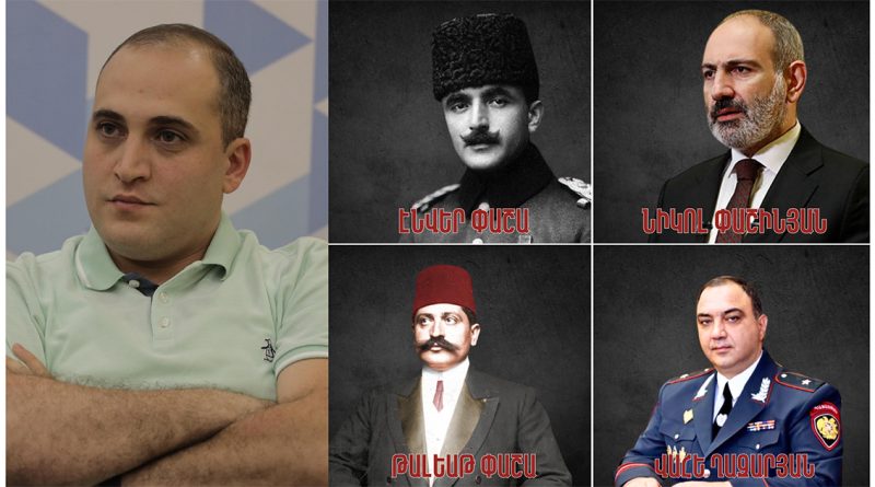 Ավելի հակիրճ լինելու համար չեմ թվարկում երիտթուրքերի և նիկոլական խուլիգանախմբի գործողությունների միջև առկա նմանությունների շարքը, բայց, հաշվի առնելով պահի էմոցիոնալությունն ու գետնի վրա գործող խուլիգանախմբի կարկառուն ներկայացուցիչներին, չեմ կարող չկենտրոնանալ մի շատ աչք ծակող նմանության, ես կասեի՝ նույնականացման վրա։ Վերջին օրերին նիկոլական հանցավոր խուլիգանախմբի ներկայացուցիչներից ամենաապականվածները գործուղվում են Տավուշ իրենց երիտթուրքական գործելակերպը մերժող քաղաքացիներին սադրելու նպատակով։ Այդ ներկայացուցիչների մեջ առավել ակտիվ է տավուշեցի Վահե Ղազարյանը, որը հանդիսանում է ՀՀ ներքին գործերի նախարարը և որի ղեկավարած կառույցի ծառայողներն իր երիտթուրք պաշտոնակից Թալեաթ Փաշայի աշխատակիցներից ոչնչով չեն տարբերվում՝ հայերի նկատմամբ ունեցած վերաբերմունքով։ Վահե Ղազարյանը և Թալեաթ Փաշան շատ նմանություններ ունեն իրենց գործունեության և հատկապես հայ ժողովրդի նկատմամբ իրենց ղեկավարած կառույցների վերաբերմունքով, շատ հատկանշական է այս օրերին Ղազարյանին սեփական հայրենիքը հանձնելու առաջամարտիկի դերում տեսնելը։