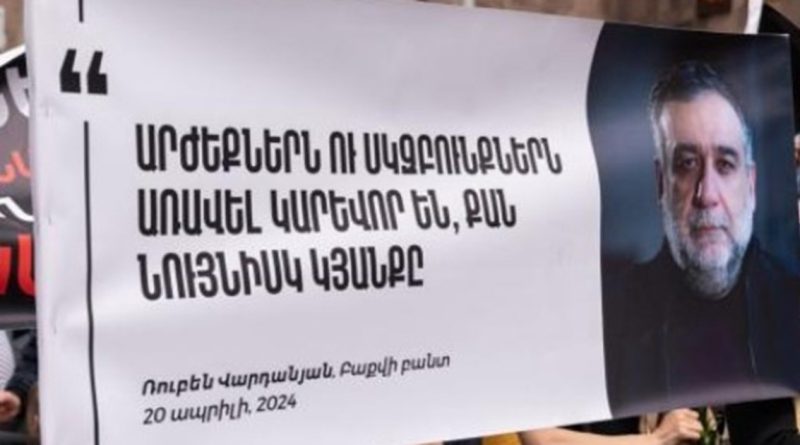 Երթի մասնակիցների պաստառներից մեկին էլ Բաքվի բանտից Ռուբեն Վարդանյանի՝ ընտանիքի միջոցով փոխանցած ուղերձն էր՝ «Արժեքներն ու սկզբունքներն առավել կարևոր են, քան նույնիսկ կյանքը»: