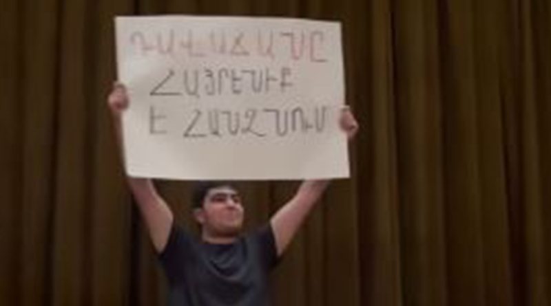 «Նիկոլ, դավաճան», «Դավաճանը հայրենիք է հանձնում» պաստառներով ակցիա՝ Պարոնյանի անվ. թատրոնում