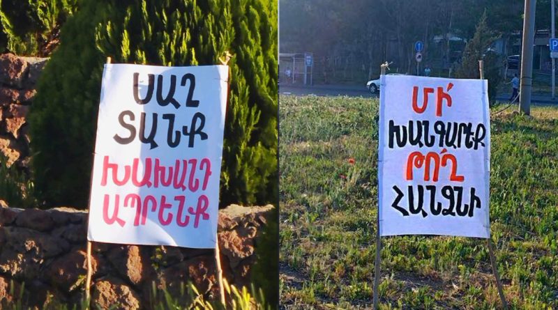«Տավուշը հանուն հայրենիքի» քաղաքացիական նախաձեռնության ֆեյսբուքյան էջում հրապարակվել են հեգնական գրառումներով պաստառների լուսանկարներ, որոնք փակցված են քաղաքի տարբեր հատվածներում։