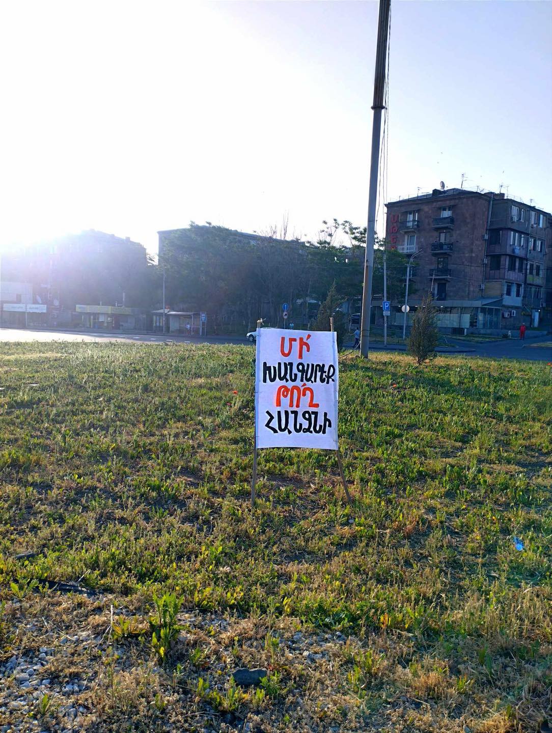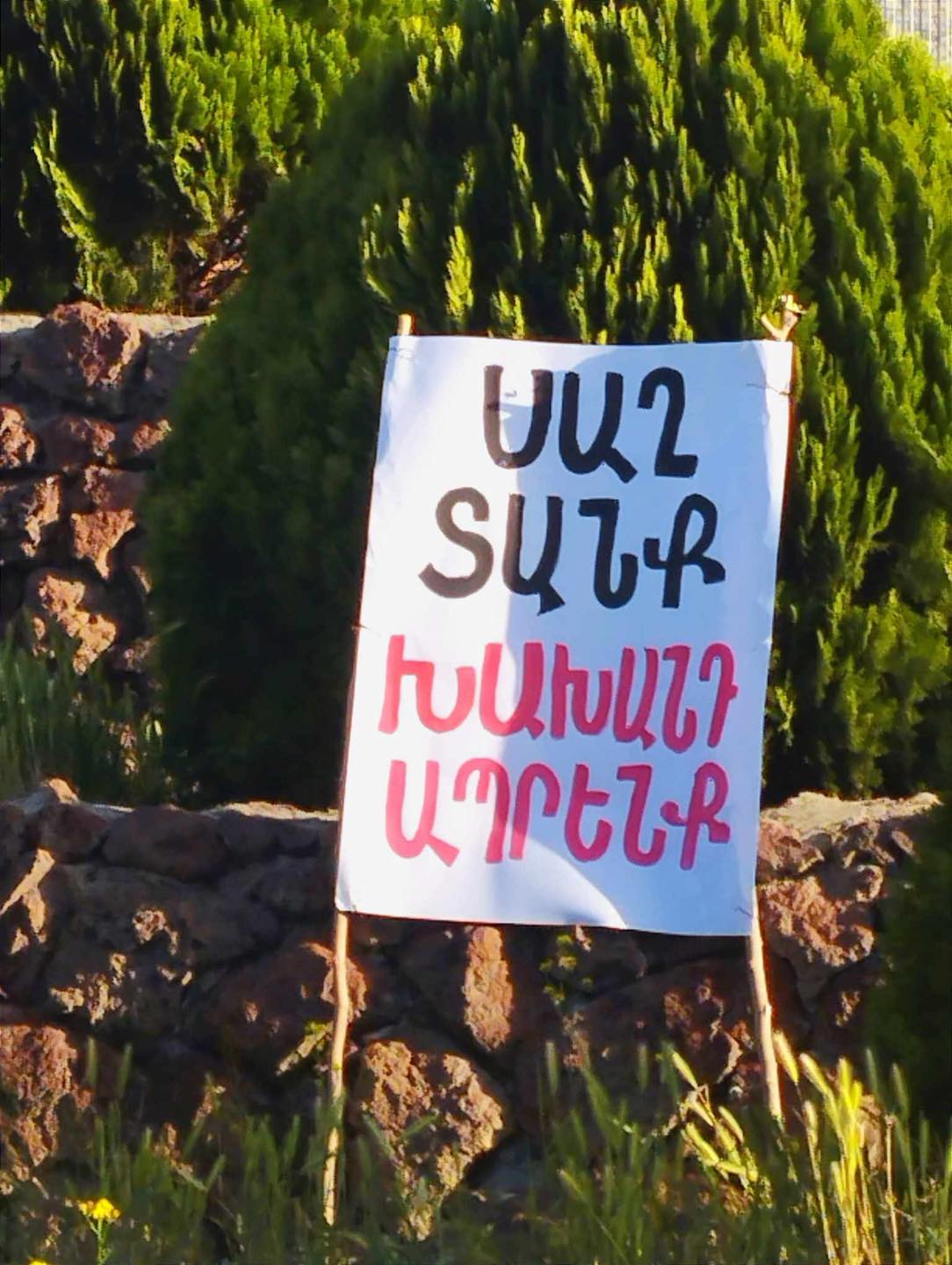 «Սաղ տանք, խախանդ ապրենք», «Լռեք, թող հանձնի», «Դուխով հանձնի, հետդ ենք», Մի խանգարեք, թող հանձնի», «Թողեք, թող հանձնի», «Հանձնենք, հանգիստ ապրենք»,- գրված են պաստառներին։