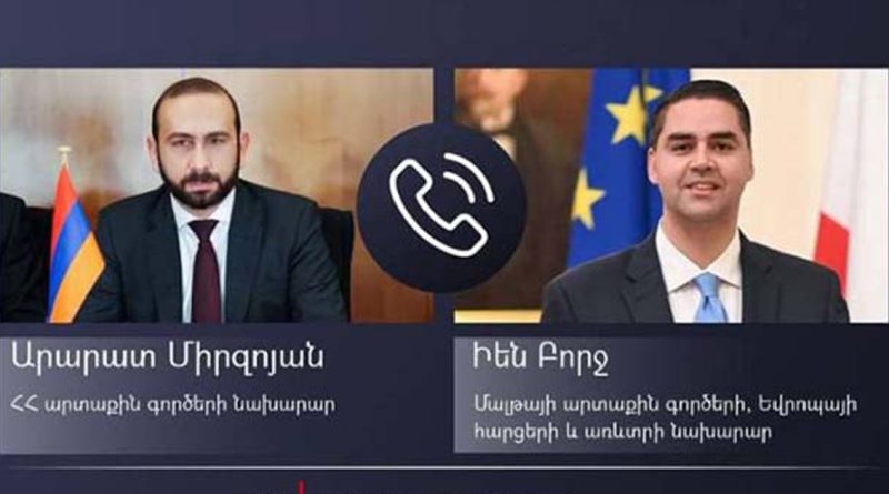 ՀՀ արտաքին գործերի նախարար Արարատ Միրզոյանը մայիսի 3-ին հեռախոսազրույց է ունեցել Մալթայի Հանրապետության արտաքին գործերի, Եվրոպայի հարցերի և առևտրի նախարար Իեն Բորջի հետ: