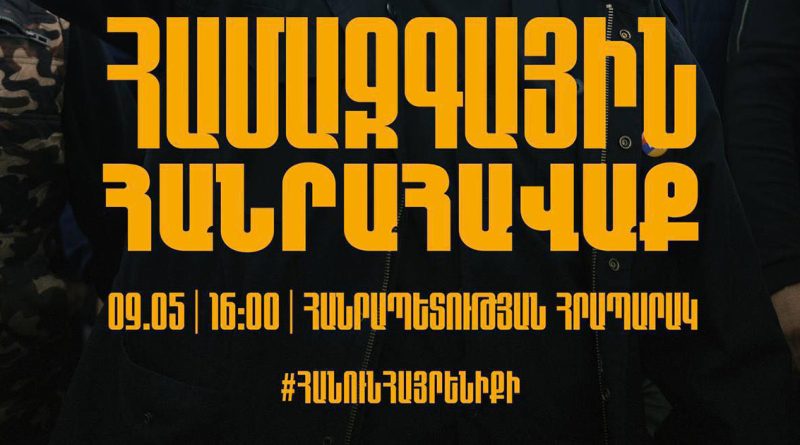 Մայիսի 9-ին, ժամը 16:00-ին Հանրապետության հրապարակում տեղի կունենա համազգային հանրահավաք։
