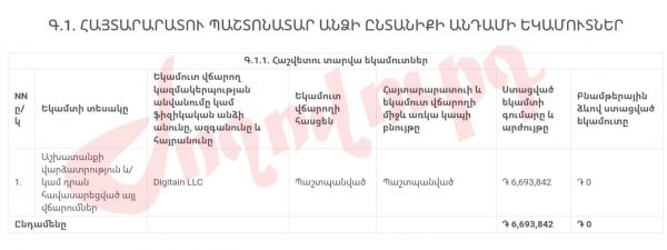 Եթե Մարիամ Փաշինյանը 2021 թվականին «Դիջիթեյն»-ից ստանում էր 6,7 միլիոն դրամ, հաջորդ տարի նրա եկամուտը դարձավ 10.9 միլիոն։