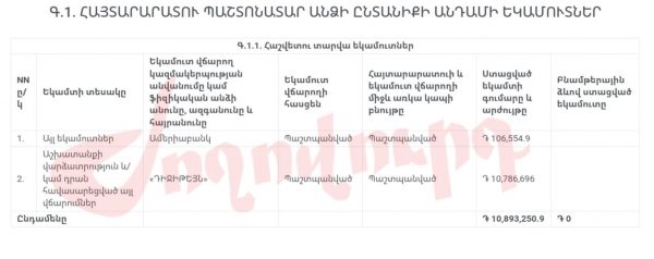 Կոռուպցիան հեռու ման չգալու համար՝ դիտենք վարչապետի դստեր հայտարարագիրը։