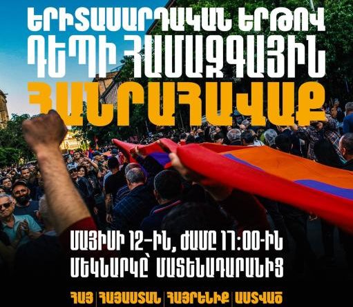 Մայիսի 12-ին, ժամը`17:00-ին, Մատենադարանի դիմացից կմեկնարկի երիտասարդական երթ դեպի հրապարակ