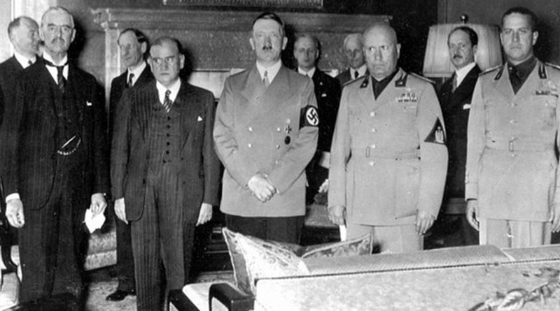 Եվ ահա, Մեծ Բրիտանիան, Ֆրանսիան և Իտալիան ցանկանալով, այսպես ասած, խաղաղացնել Գերմանիային, 1938-ի աշնանը Մյունխենում ստորագրեցին համաձայնագիր, ըստ որի Գերմանիային հանձնվեց Չեխոսլովակիայի Սուդետյան մարզը՝ իր բոլոր կառույցներով ու պաշտպանական ամրություններով, հումքի պաշարներով, հաղորդակցության ճանապարհներով: