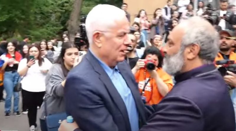 «Տավուշը հանուն հայրենիքի» շարժման առաջնորդ Բագրատ Սրբազանին ԵՊՀ-ի բակում երիտասարդները շուրջպարով դիմավորեցին։