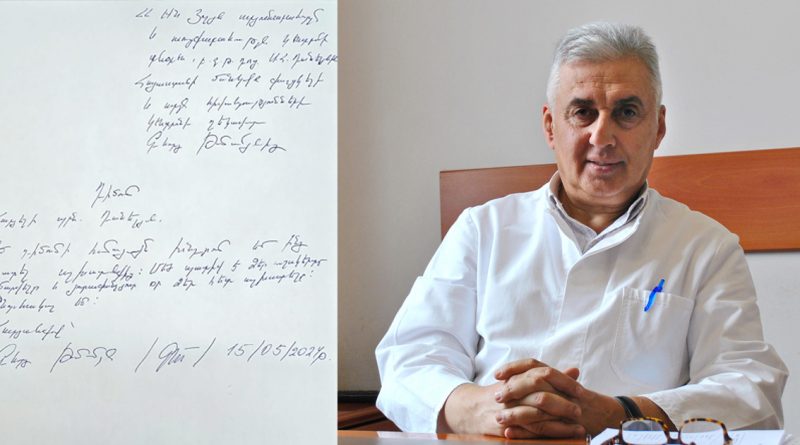 «Քիչ առաջ բժիշկ Դանելյանն ազատվել է աշխատանքից` Յոլյան արյունաբանության եւ ուռուցքաբանության կենտրոնի տնօրենի պաշտոնից։ Իմ պատասխանն այդ որոշմանը` ներկայացրել եմ ազատման դիմում։ Պատճառների մասին` քիչ անց կխոսենք։
