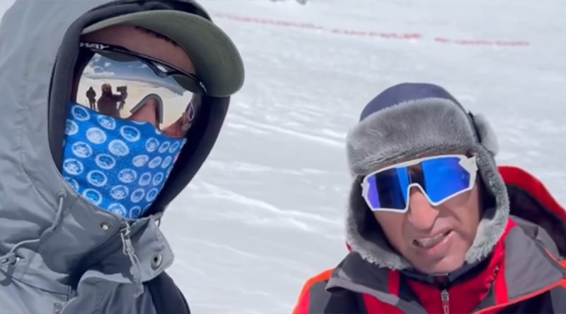 «Մենք հաղթահարեցինք Արագածի հարավային գագաթը։ Բավականին ցուրտ է՝ -20 աստիճան, քամի, դահուկներով հասանք մինչև 3700 մ բարձրություն, ապա շարունակեցինք ոտքով»,-Արագածի ձնապատ գագաթից հայտարարում է Դահուկային սպորտի ֆեդերացիայի նախագահ Գագիկ Սարգսյանը։