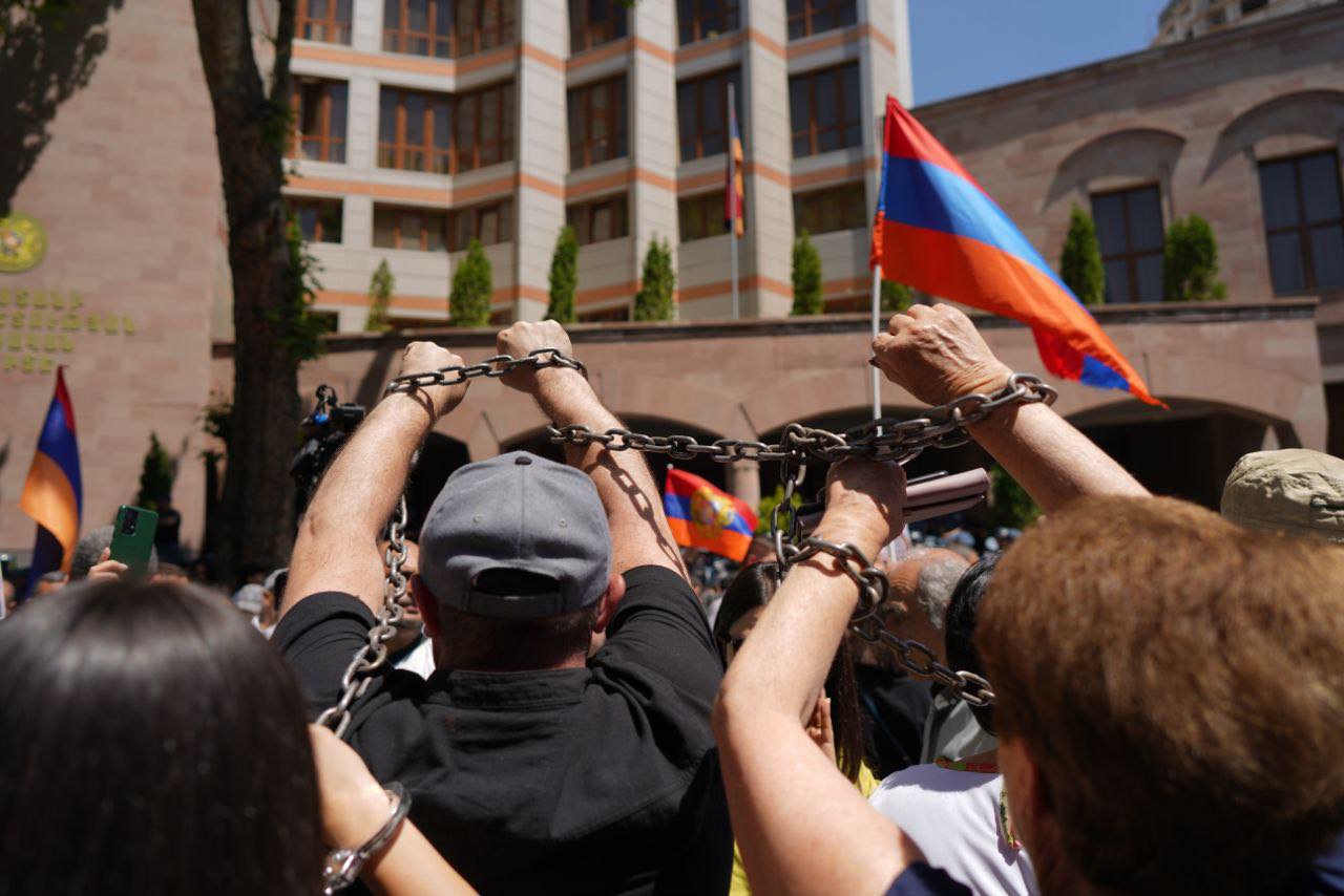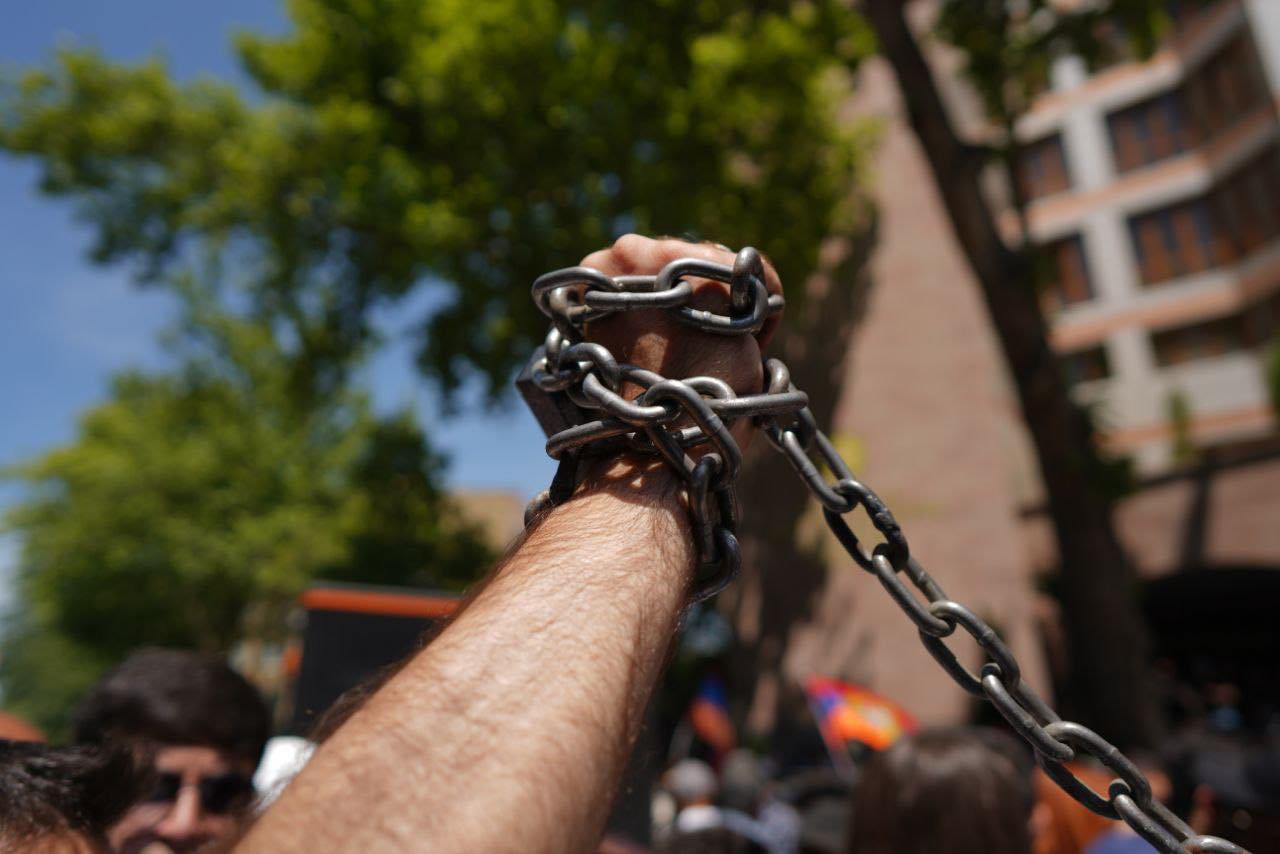 Հայաստան Հասարակություն Մենք չենք վախենում շղթայվելուց. երիտասարդների ակցիան ՔԿ-ի մոտ (լուսանկարներ) 03.06.202403.06.2024 0 min read Երիտասարդները ձեռնաշղթաներով ակցիա են իրականացրել ՀՀ ՔԿ-ի մոտ` հաջակցություն մայիսի 31-ին ԱԳՆ-ի բակից բերման ենթարկված, ապա ձերբակալված քաղաքացիների։