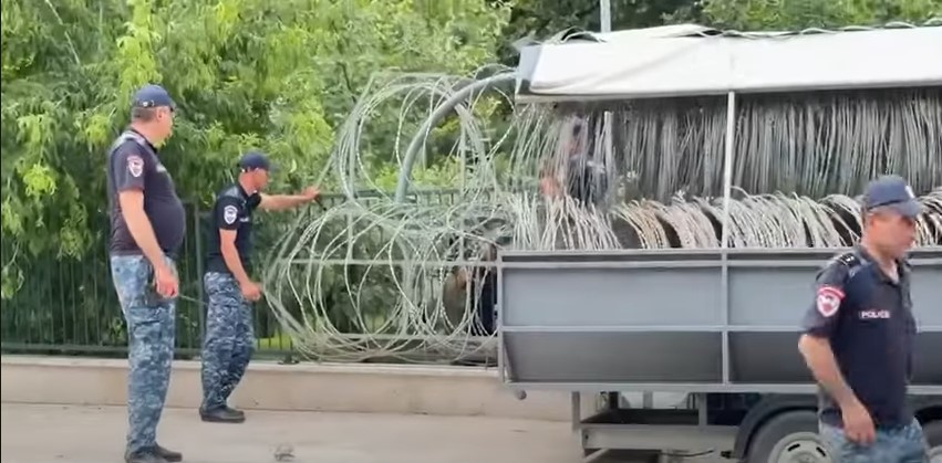 Ոստիկանները փշալար են քաշում Դեմիրճյան փողոցում (լուսանկարներ)
