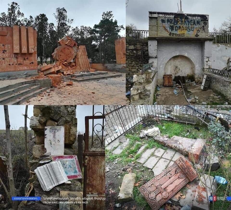 Я, автор данного материала, по-граждански спрашиваю – у посла РФ в Армении, у высших должностных лиц России, начиная с президента Путина – ладно, у власти в Ереване откровенные подонки и говнюки, марионетуствующие на Запад и Турцию. Ладно – за живых арцахцев никто не захотел заступаться, начиная именно с самой Армении, ведь ни один (!!!) армейский корпус из пяти в составе вооружённых сил РА не двинулся на помощь Армии обороны НКР. НО ЗА МОГИЛЫ И ПАМЯТНИКИ УЧАСТНИКАМ ВЕЛИКОЙ ОТЕЧЕСТВЕННОЙ ВОЙНЫ АРЦАХСКИМ АРМЯНАМ ИЗ-ЗА ЭТОГО (!!!) ТОЖЕ НАДО НЕ ЗАСТУПАТЬСЯ?! И – кому???? – России не надо заступаться, которая по каждому случаю с такими инцидентами в Прибалтике или на Украине, буквально бьёт в колокола??? Ради того, чтобы подонки Эрдоган и Алиев продолжали себя называть вашими «партнёрами»??? И нагло улыбались, убивая при этом русских, российских солдат и офицеров?! И в Сирии, и в Арцахе??? Ну-ну!.. Продолжайте в том же духе, власти России и русские. Быть может, туркские кинжалы и по вашим спинам «пройдутся», – тогда вы «очнётесь»… Я понимаю – камни (!!!) боли не чувствуют и не плачут. Жаль, что для сегодняшней России безразличны армяне-солдаты и офицеры тех самых «Красной армии», «Советской армии», только потому, что они – родом из Арцаха…