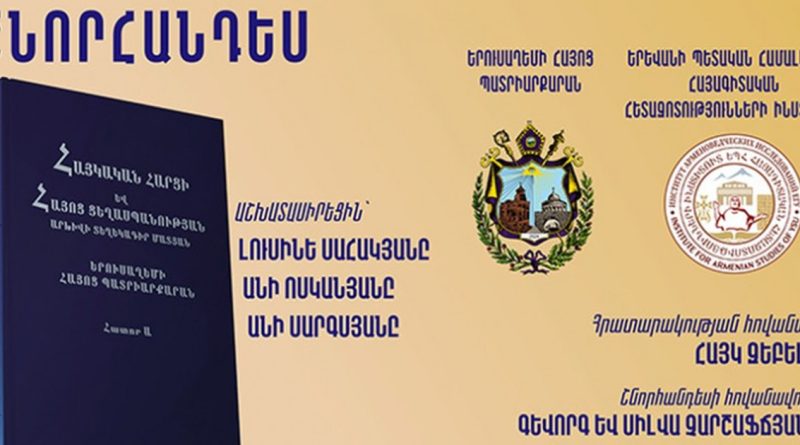 Լույս է տեսել «Հայկական հարցի և Հայոց ցեղասպանության արխիվի տեղեկագիր մատյան. Երուսաղեմի Հայոց պատրիարքարան» գիրքը