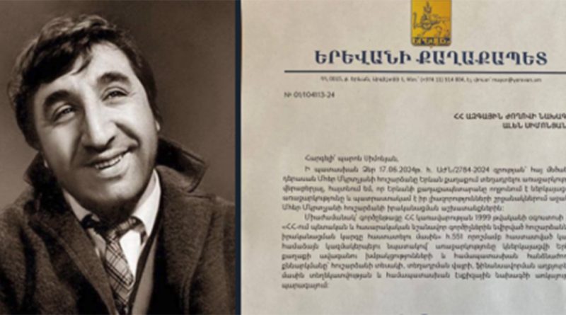 ԱԺ նախագահ Ալեն Սիմոնյանը դիմել է Երևանի քաղաքապետ Տիգրան Ավինյանին՝ առաջարկելով Երևանում կանգնեցնել Մհեր Մկրտչյանի հուշարձանը։