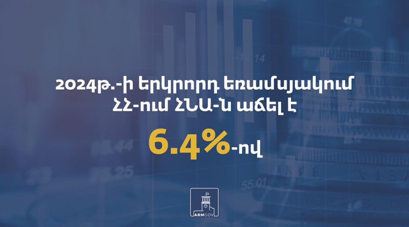 2024 թ․ երկրորդ եռամսյակում Հայաստանում ՀՆԱ-ն աճել է 6․4 %-ով․ Կառավարություն