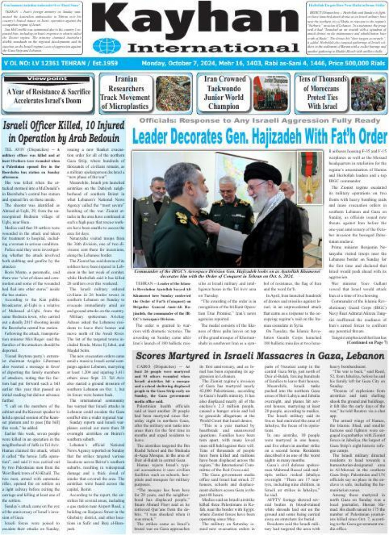 Французский автор Ксавье Виллар в статье для иранской официозной газеты «Tehran Times» достаточно внимательно и скрупулёзно проследил саму акцию Возмездия Ирана, да и некоторые её итоги. Он пишет, что в официальном заявлении Корпуса стражей исламской революции (КСИР) Ирана сообщалось, что эти ракетные удары являются частью операции «Истинное обещание II», проводимой под кодовым названием «О, Посланник Бога!» и направленной против объектов службы безопасности и разведки в Израиле. КСИР опубликовал своё заявление всего через несколько минут после начала операции, в котором говорится: «Великое исламское сообщество, благородный иранский народ, ставший мучеником, несколько минут назад, после периода сдержанности перед лицом нарушения суверенитета Исламской Республики Иран в результате убийства сионистским режимом погибшего бойца, доктора Исмаила Хания, и в соответствии с правом страны на законную оборону в соответствии с Уставом ООН, отреагировал на активизацию зверств режима, поддержанного Соединёнными Штатами в резне в Ливане и других странах». В этом контексте и в память о мученической смерти великого бойца, лидера Оси Сопротивления и гордого генерального секретаря «Хезболлах», мученика Хасана Насраллаха, а также храброго командира и старшего советника КСИР в Ливане, генерал-майора Сейеда Аббаса Нилфороошана, Аэрокосмические силы КСИР запустили десятки баллистических ракет по ключевым военным объектам и объектам безопасности в самом сердце оккупированных территорий». В заявлении также содержится предупреждение о том, что «эта операция была одобрена Высшим советом национальной безопасности и санкционирована Генеральным штабом Вооружённых сил при поддержке армии Исламской Республики Иран и Министерства обороны. Предупреждается, что если сионистский режим ответит военным ударом на эту операцию, которая соответствует международному праву и законным правам страны, он столкнётся с разрушительными и сокрушительными атаками».