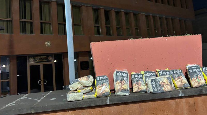 Մի խումբ քաղաքացիներ ակցիա են իրականացրել Անվտանգության խորհրդի գրասենյակի մոտ՝ այնտեղ բրնձի տոպրակներ տանելով, որում ԱԽ քարտուղար Արմեն Գրիգորյանի նկարն է: