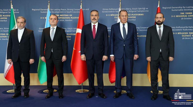 2024թ. հոկտեմբերի 18-ին Թուրքիայի Հանրապետության արտաքին գործերի նախարար Հաքան Ֆիդանի հրավերով և Հայաստանի Հանրապետության արտաքին գործերի նախարար Արարատ Միրզոյանի, Ադրբեջանական Հանրապետության արտաքին գործերի նախարար Ջեյհուն Բայրամովի, Ռուսաստանի Դաշնության արտաքին գործերի նախարար Սերգեյ Լավրովի, Իրանի Իսլամական Հանրապետության արտաքին գործերի նախարար Սեյեդ Աբբաս Արաղչիի մասնակցությամբ տեղի է ունեցել «3+3» տարածաշրջանային համագործակցության հարթակի երրորդ հանդիպումը: Այս մասին տեղեկացնում է ՀՀ ԱԳՆ-ը։