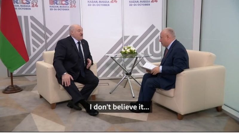 Նրա խոսքով, թե ինչպես ռուսական զորքերը կլքեն Բելառուսի տարածքը, որոշում էր միայն Պուտինը։ Նա դա կարող էր կատարել Կիևով կամ Մինսկով, նշել է Լուկաշենկոն։ Լրագրողի հարցին, թե Բելառուսի նախագահը այդ պահին զանգահարե՞լ է Պուտինին՝ պարզաբանելու, թե ինչ է կատարվում։ «Ոչ. Նա ինձ չզանգեց։ Եվ ես նրան չզանգեցի։ Դրանք իր զորքերն էին, և նա իրավունք ուներ դրանք տեղափոխել այնտեղ, որտեղ կամենար»,- ասել է Լուկաշենկոն։
