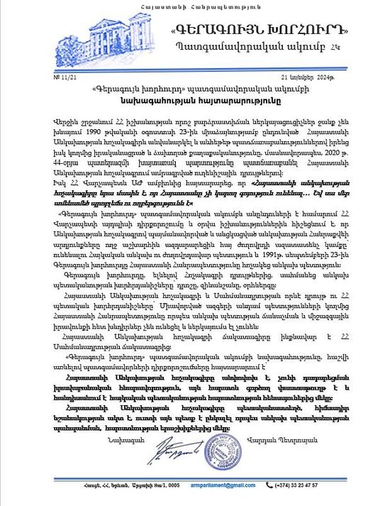 «…Գերագույն խորհուրդ» պատգամավորական ակումբը հայտարարում է՝