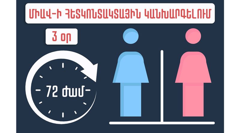 Առողջապահության նախարարությունից հայտնում են, որ այս տարվանից ՄԻԱՎ-ի հետկոնտակտային կանխարգելումն իրականացվում է պետպատվերի շրջանակում: ՄԻԱՎ-ի հետկոնտակտային կանխարգելման տևողությունը 4 շաբաթ է: