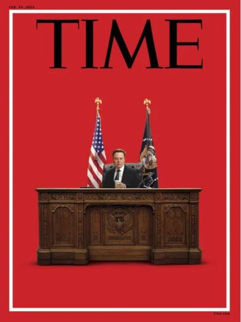 Time ամսագիրն իր նոր համարի շապիկին պատկերել է Իլոն Մասկին՝ ԱՄՆ նախագահի աթոռին նստած