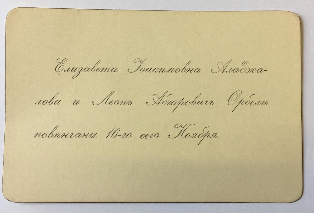 Հարսանեկան այցեքարտ՝ 1907թ.։ Ռազմաբժշկական թանգարանի հավաքածուից։