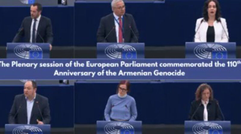 Եվրոպական խորհրդարանի ապրիլի 3-ի լիագումար նիստի ընթացքում հատուկ ոգեկոչվել է Հայոց ցեղասպանության 110-րդ տարելիցը։ Եվրոպական խորհրդարանի բազմաթիվ պատգամավորներ ընդգծել են պատմական այդ ողբերգության և վերջին շրջանում Լեռնային Ղարաբաղից էթնիկ հայերի հարկադիր տեղահանումների միջև խոր զուգահեռները։ Խորհրդարանականները Թուրքիային և Ադրբեջանին կոչ են արել ճանաչել Հայոց ցեղասպանությունը՝ որպես հաշտեցման կարևոր քայլ և խստորեն քննադատել ԵՄ-ի շարունակական համագործակցությունը Ադրբեջանի հետ՝ չնայած վերջինիս գործողություններին։ Հայտնում են ՀՅԴ Բյուրոյի Հայ դատի կենտրոնական գրասենյակից: