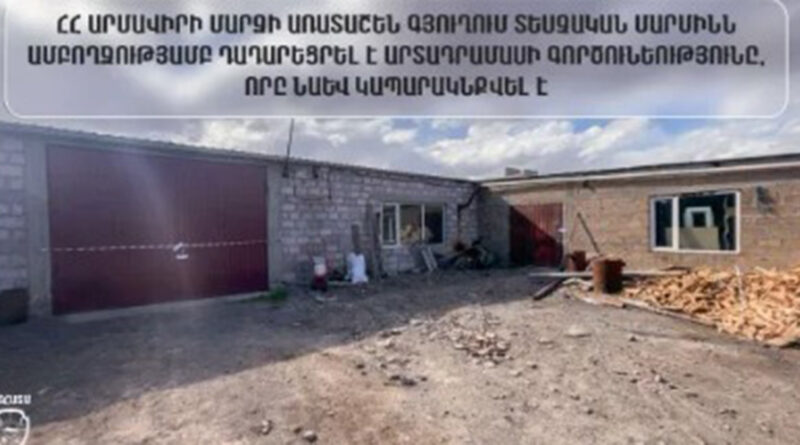 Հավելենք, որ 2025 թ․ ապրիլի 10-ին Տեսչական մարմնի Արմավիրի տարածքային ստորաբաժանման և Հարկադիր կատարումն ապահովող ծառայության մարզային ստորաբաժանման մասնագետների հետ համագործակցության արդյունքում արտադրամասը կապարակնքվել է՝ մինչև արձանագրված խախտումների և թերությունների վերացումը։